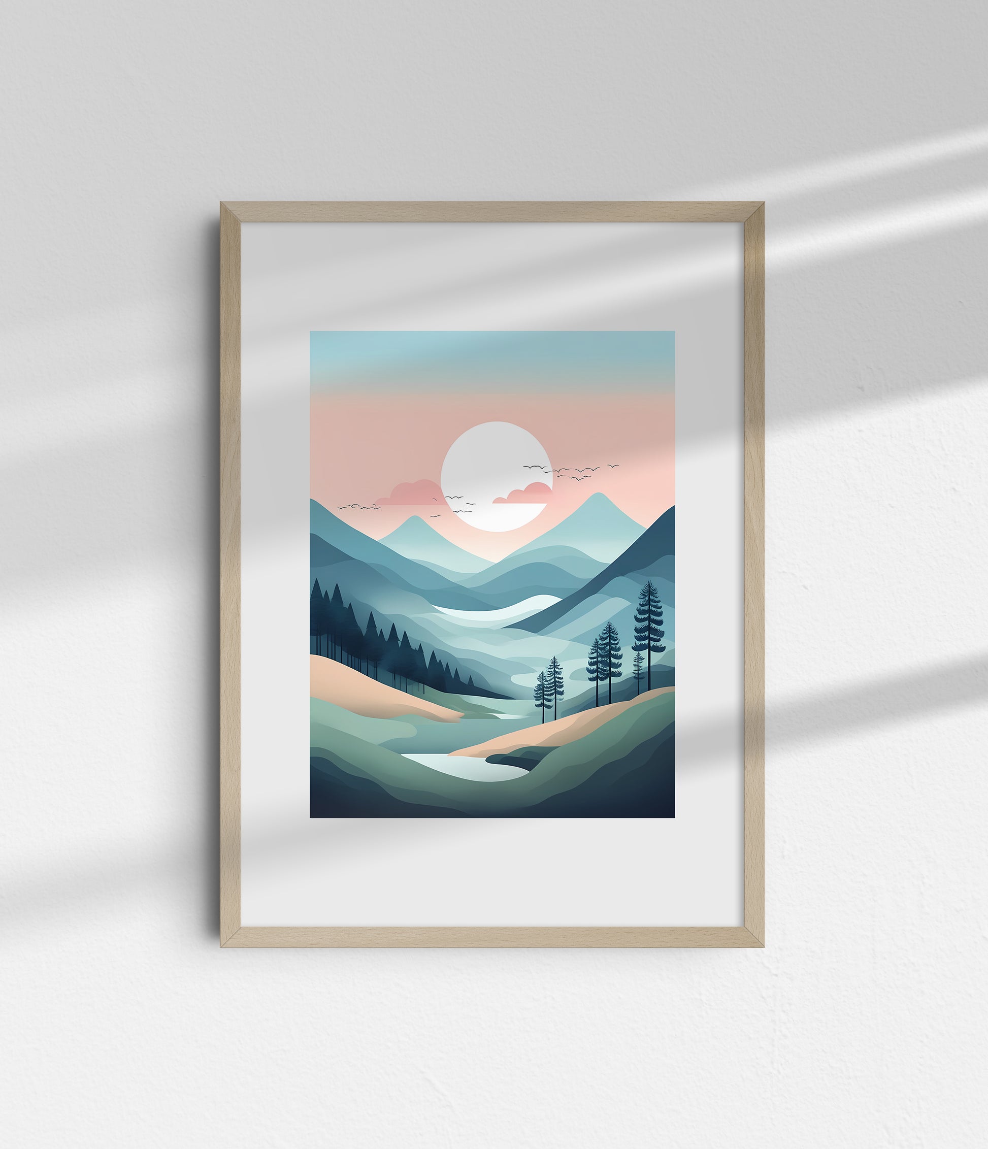 Tranquil Mountain Horizon: Abstract Minimalist Landscape